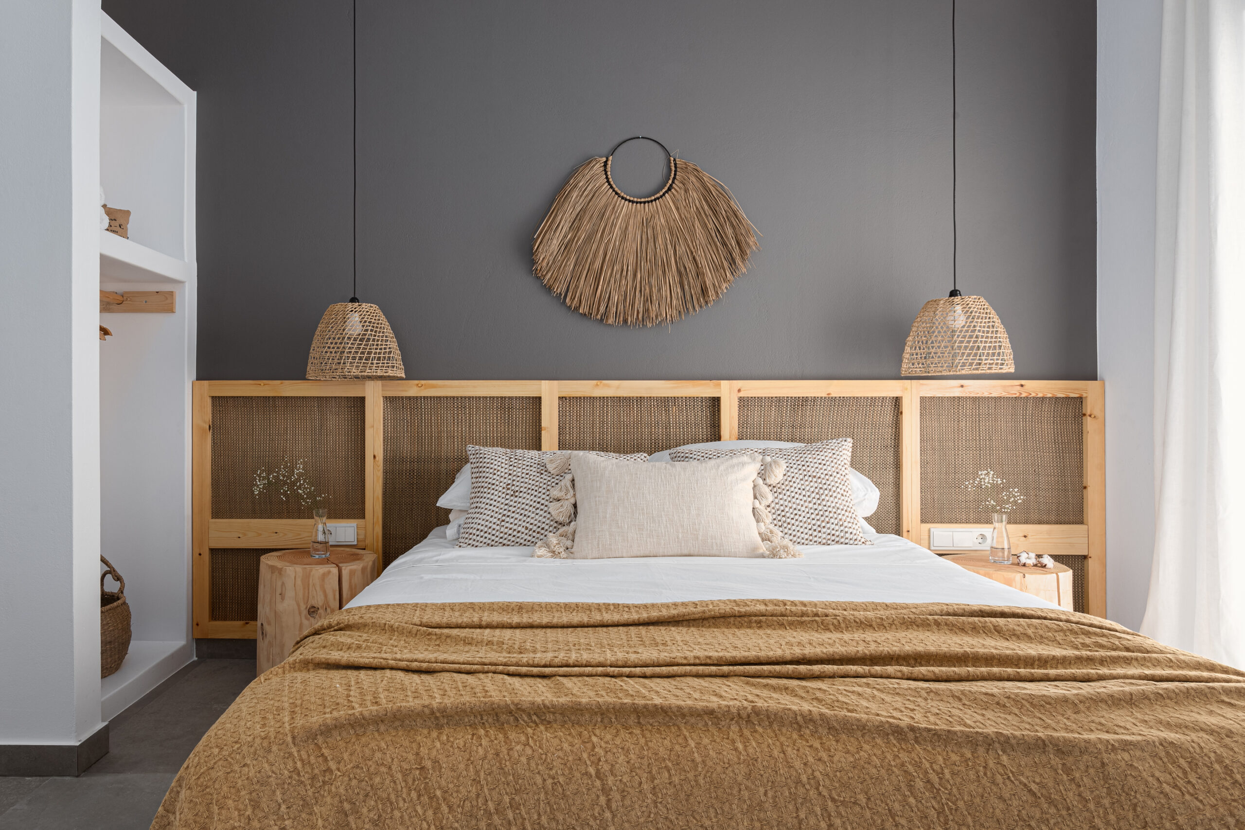 The interior is minimal in design and affluent in amenities, with neutral hues, well-crafted built-in furniture, Cycladic architectural details, and smooth lines that create a paragon of homely luxury.